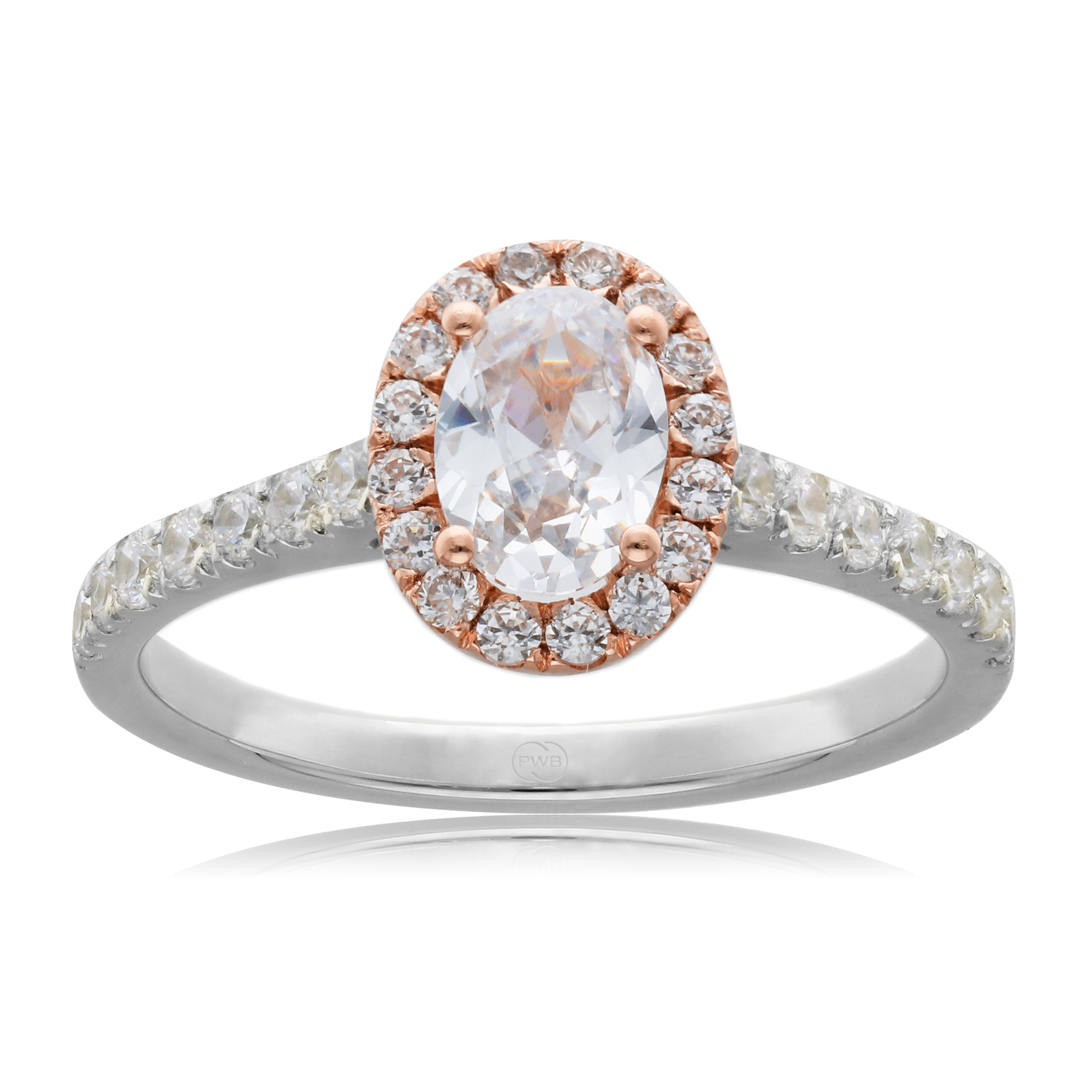 Oval Diamond Engagement Ring with Diamond Accents in Two Tone 9ct Gold
