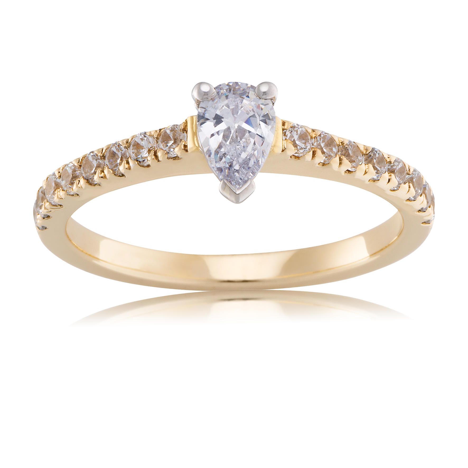 Pear Diamond Engagement Ring with Diamond Accents in Two Tone 9ct Gold