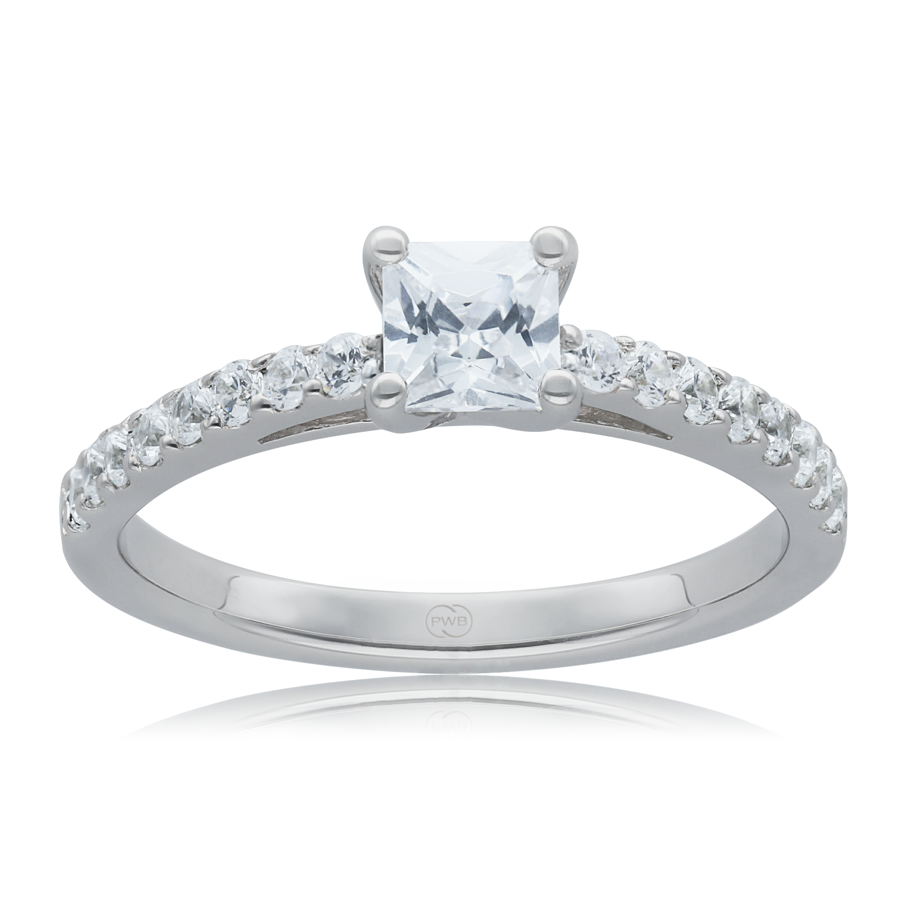 Delicate and sophisticated, this 9ct white gold engagement ring features a 0.50ct natural princess cut diamond, admired for its square shape and modern brilliance.