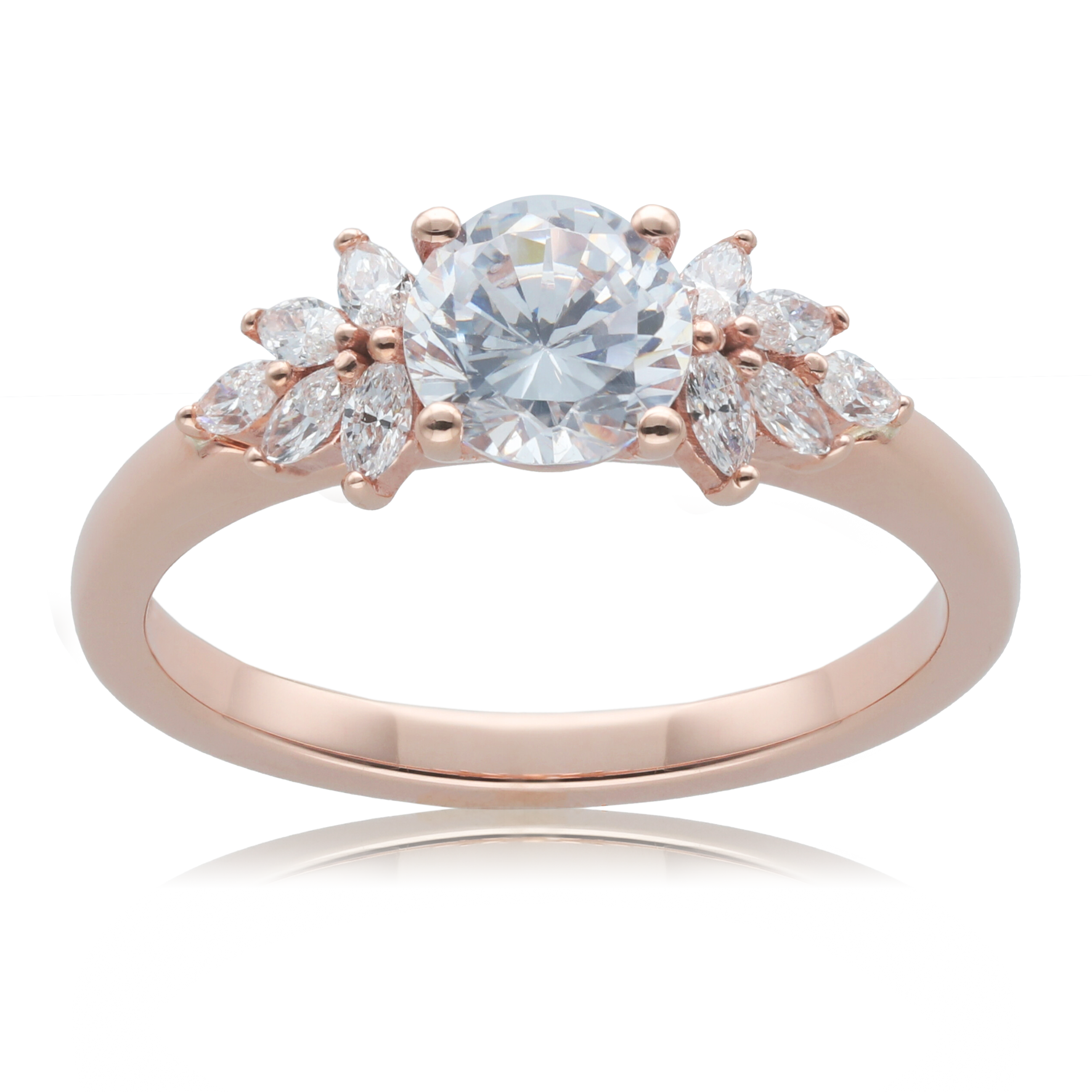 Round 0.75ct Diamond Engagement Ring with Marquise Accents in 9ct White Gold